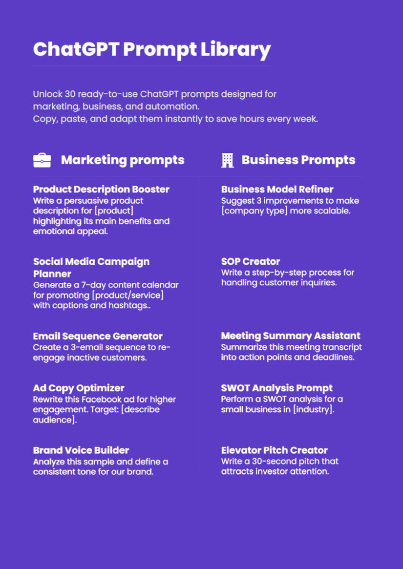 • 10 extra ChatGPT prompts (exclusive to the bonus pack)